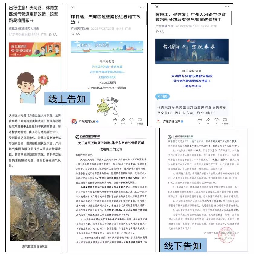 工程完工 成效满满。经过8个月紧张施工,5个更新改造工程顺利完成。其中,天河区天河路(天河城至万菱汇)燃气管道改造工程被广州市交通运输局作为城市道路占道施工优秀案例和创新宣传告知工作优秀案例供各单位学习借鉴,也为接下来推进黄埔大道和中山大道等中心城区主干道的管道改造工作提供了新的思路、新的标杆。