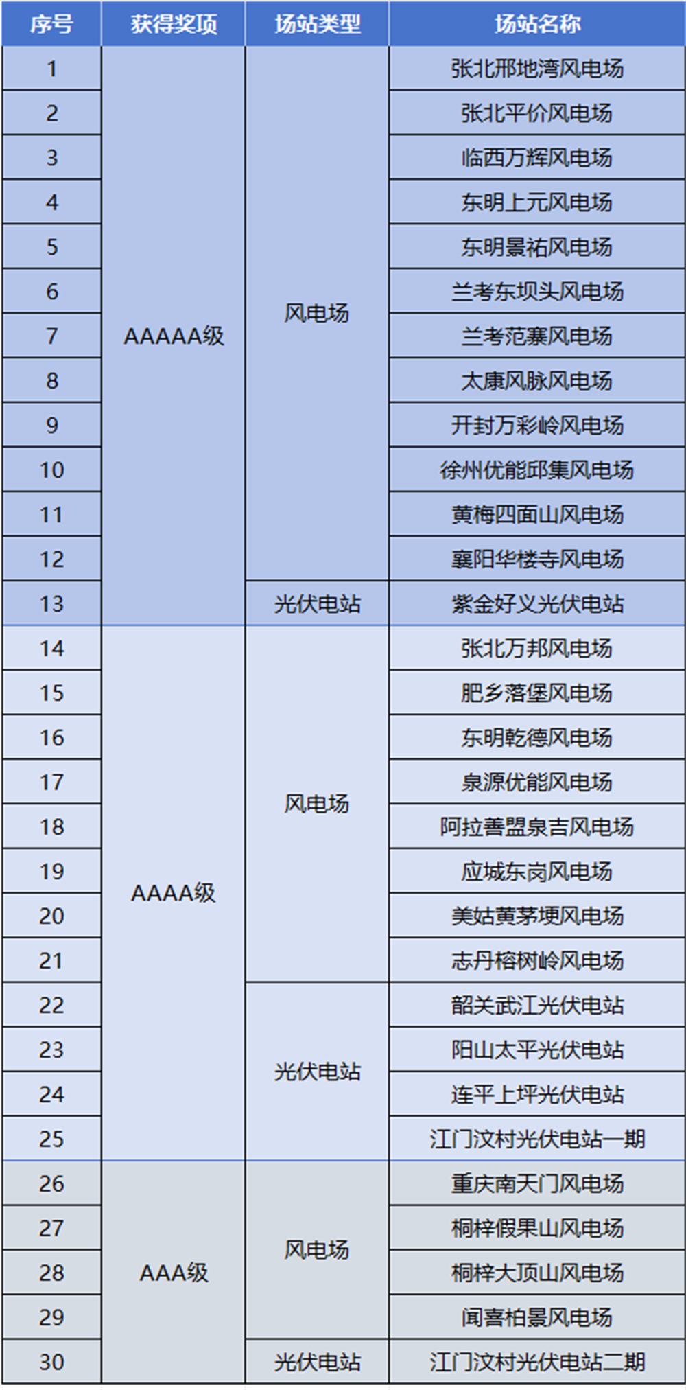 近日,中国电力企业联合会公布2024年度电力行业风电、光伏对标优胜名单,太阳集团网址新能源集团共计30个场站上榜,优胜占比率77%,位居全国前列。其中,12个风电场、1个光伏电站获评最高“AAAAA”级,8个风电场、4个光伏电站获评“AAAA”级,4个风电场、1个光伏电站获评“AAA”级。